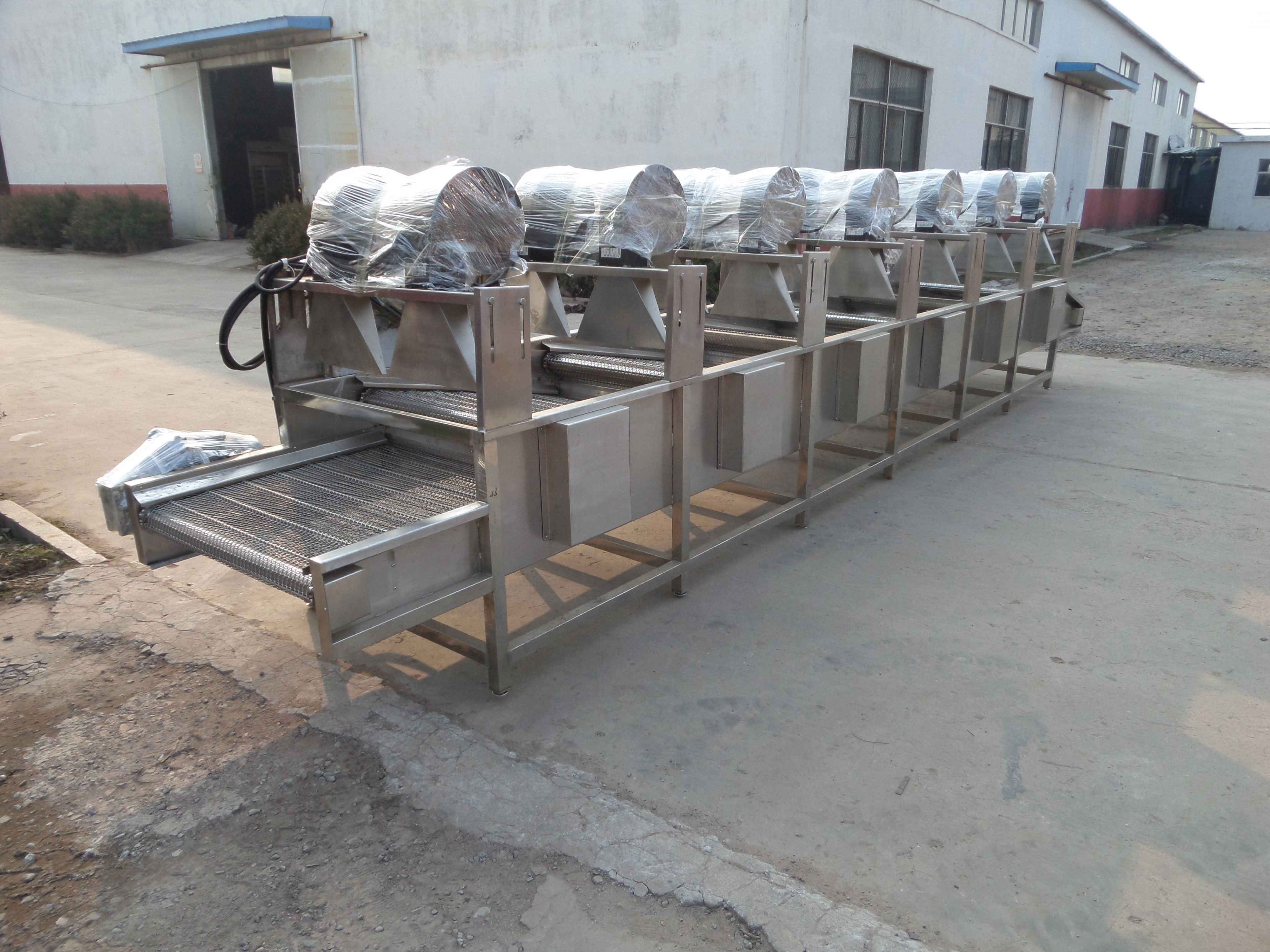 4、清洗风干流水线的第四步是进入到风干线进行风干,首先前半部分通过大功率高温风机对产品进行风干,后半部分是高温烘干,将产品表面残留的zui后一点水分给烘干掉。常温风干段各风机可独立控制,客户可根据产品干燥程度自行控制风机个数,降低能耗。高温烘干段采用蒸汽盘管加热,烘干包装袋外表吹干水珠后的潮气,同时为了保证低温天气水份蒸发慢时的风干效果